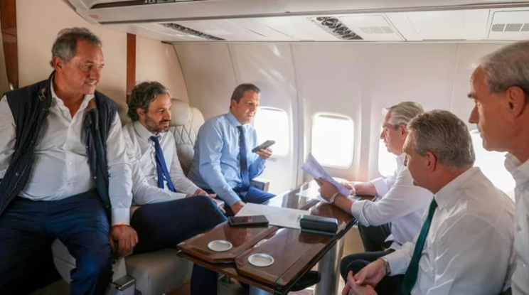 El presidente Alberto Fernández partió hoy rumbo a rumbo a Brasilia con una nutrida comitiva en la que se encuentran Sergio Massa, Daniel Scioli, Santiago Cafiero, Agustín Rosi, Gabriela Cerruti y Julio Vitobello. El objetivo es encontrarse con el presidente Lula Da Silva para cerrar un acuerdo que permita utilizar pesos y reales -en lugar de dólares- en el intercambio comercial entre los dos países.