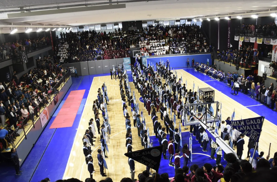 Alrededor de 3200 estudiantes en las tribunas y un centenar de abanderados con uniforme deportivo, que vistieron de celeste y blanco el rectángulo de juego, le dieron el marco a este especial día del calendario educativo.