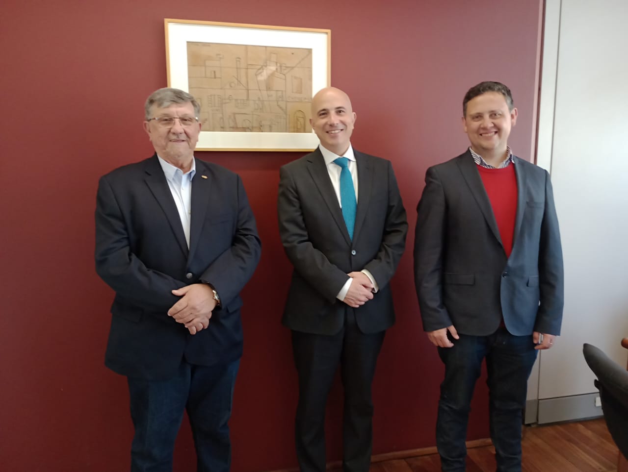 El Presidente de la Cámara de Comercio Exterior de Jujuy, Jorge Gurrieri, acompañado por el Vicepresidente de la entidad Sebastián Mealla, y el encargado de comunicación Martin Miguel Llanos, fueron recibidos en la Cancillería por el Jefe de Coordinación Diplomática del Ministerio de Relaciones Exteriores Atilio Berardi Hueda.