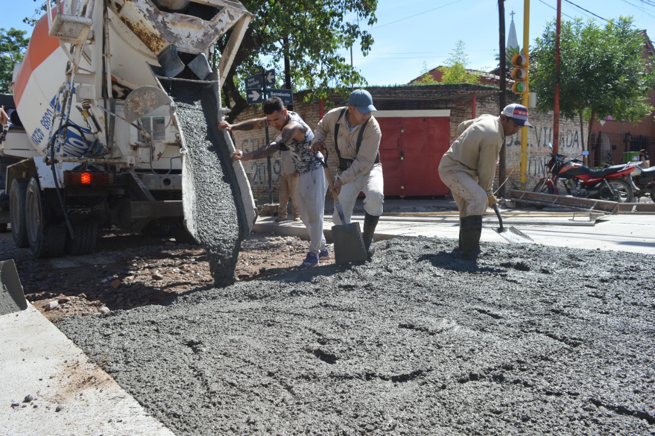 A través de la Subsecretaría de Obras Públicas, el equipo de trabajo realizó el hormigonado correspondiente en la intersección con calle Sarmiento “continuamos con el hormigonado de la tercera cuadra de la calle Vélez Sarsfield, una obra que tiene un buen avance”, manifestó José González.