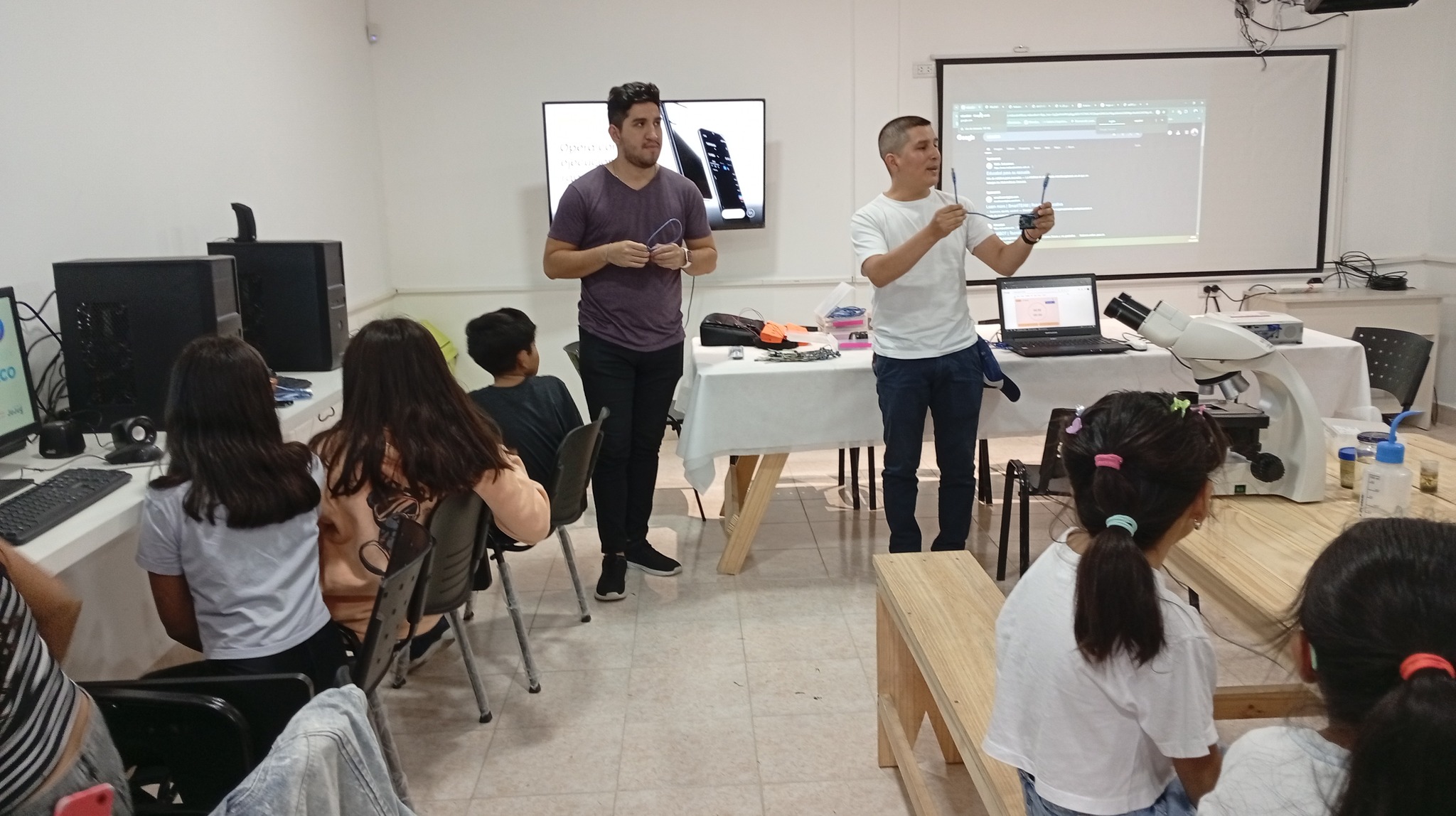 Por su parte, Viviana Arce explicó sobre la importancia de la educación itinerante y el acceso a la tecnología: «Desde el Ministerio de Educación buscamos hacer territorio, llevando propuestas tecnológicas a toda la provincia”, y agregó “en esta oportunidad, trajimos actividades sobre Arduino, microscopios y lupas digitales”.