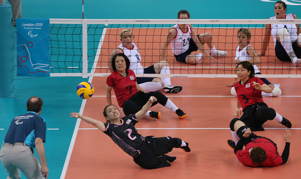 El voleibol sentado es la variante del voleibol para atletas con discapacidad, cuya pelvis debe estar durante todo el juego en contacto con el suelo con normas similares a las del voleibol convencional.