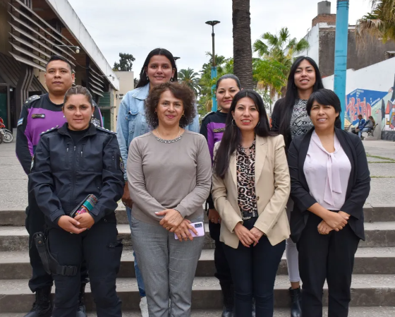Miriam Valdez, directora de Abordaje Integral a las Violencias de Género; Mariela García, secretaria de Equidad, Diversidad y Promoción de Derechos; Agostina Zayas, directora de Políticas Culturales para la Igualdad; Yael Navarro, director Provincial de Diversidad e Igualdad; Gabriela Salinas, coordinadora de los Centros de Atención Integral a Mujeres en Situación de Violencia de Género; Débora Sosa, coordinadora de Promoción de Derechos de las Mujeres y la Diversidad; y Franco Dorado, coordinador de Comunicación.