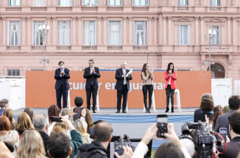 Por su parte, el ministro de Trabajo, Claudio Moroni, afirmó: «Lo que estamos realizando hoy, entre todas las cosas que lleva adelante este gobierno, es incorporar toda una batería de acciones y normas relacionadas con las tareas de cuidados y la corresponsabilidad de los mismos para garantizar su redistribución en un marco igualitario». Además, el ministro detalló: «Ampliamos los plazos de algunas licencias preexistentes e incorporamos licencias que no existían, como las de visitas para adopción y para quienes quieren procrear con técnicas de reproducción médicamente asistida. Además, reformulamos la protección de la maternidad al extender la licencia para la gestante e incorporar una licencia para la persona no gestante y para quienes adoptan un niño o niña, aplicables a quienes están bajo el régimen de la ley de contrato de trabajo, el régimen agrario, casas particulares y en la Administración Pública Nacional. En un esquema que contempla la garantía de percepción de ingresos mediante asignaciones familiares que se incorporan al sistema de cobertura de la seguridad social y que se extienden a autónomos/as y monotributistas, todo en un esquema de progresividad con incrementos cada dos años. Por último, además generamos una licencia por violencia doméstica, en consonancia con las obligaciones asumidas al ratificar el Convenio 190 de OIT sobre violencia y acoso».