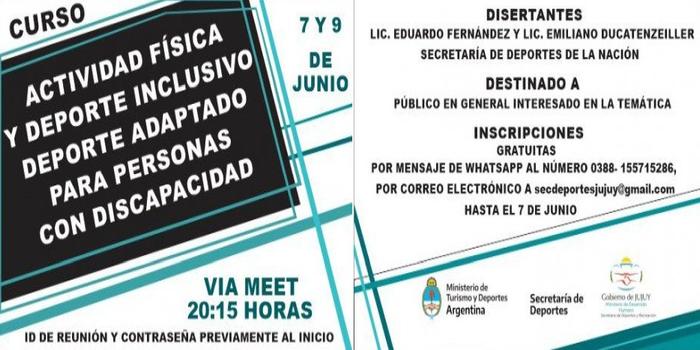 Durante los días 7 y 9 de junio a las 20.15 horas se dictará la capacitación virtual «Actividad Física y Deporte Inclusivo – Deporte Adaptado para Personas con Discapacidad» a cargo de la Secretaría de Deportes de Nación, en articulación con el Ministerio de Desarrollo Humano a través de la Secretaría de Deportes y Recreación de la provincia.