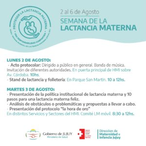 Aquí te dejamos las actividades que se llevarán adelante durante la semana de sensibilización en Jujuy. Es importante tomar conciencia que si bien el apoyo a nivel individual es muy importante, esta práctica también requiere el apoyo familiar, del entorno y comunitario. ¡Sumate!