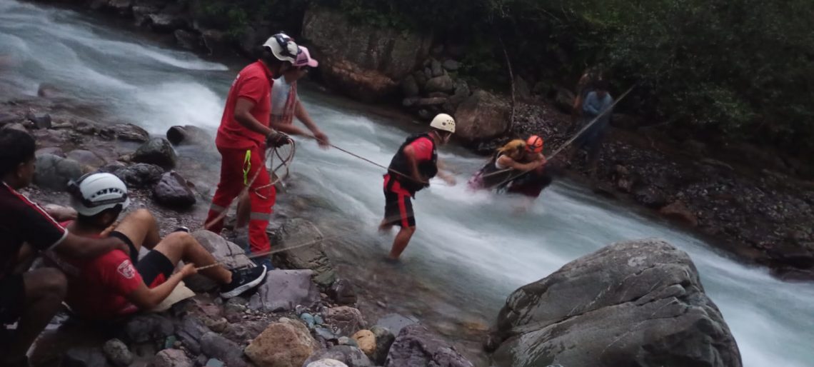Para concretar el rescate, los equipos utilizaron cuerdas, chalecos y mosquetones, permitiendo que un rescatista cruzara el río mediante técnicas de aseguramiento. Las víctimas fueron asistidas y trasladadas a un sector seguro sin presentar lesiones.