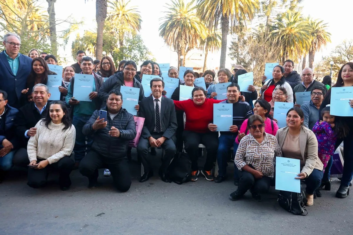 El acto, realizado en la playa de estacionamiento de Casa de Gobierno, contó con la presencia de funcionarios provinciales, el intendente de Yala, Santiago Tizón; el titular del Concejo Deliberante capitalino, Lisandro Aguiar; la escribana de Gobierno y familias beneficiarias, en una acción que reafirma el compromiso del Gobierno de Jujuy con la regularización dominial en todo el territorio.