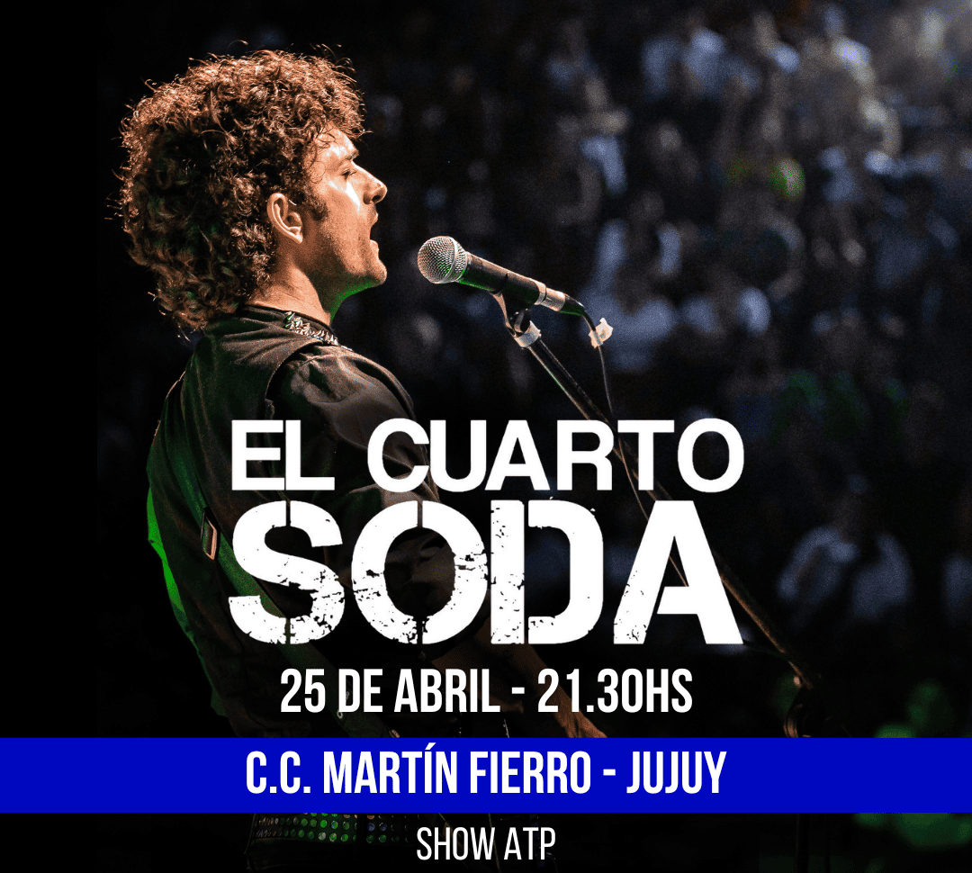 El viernes 25 de abril a las 21:30, la banda homenaje El Cuarto Soda se presentará en el Centro Cultural Martín Fierro de San Salvador de Jujuy, en el marco de su gira nacional “Clásicos totales”.
