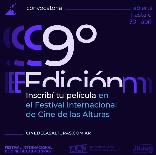 El Festival Internacional de Cine de las Alturas, convoca a productores y realizadores de Argentina, Bolivia, Chile, Colombia, Ecuador, Perú y Venezuela para que inscriban sus obras audiovisuales, en las Competencias Oficiales de la 9na edición a desarrollarse del 1 al 10 de septiembre en la provincia de Jujuy.