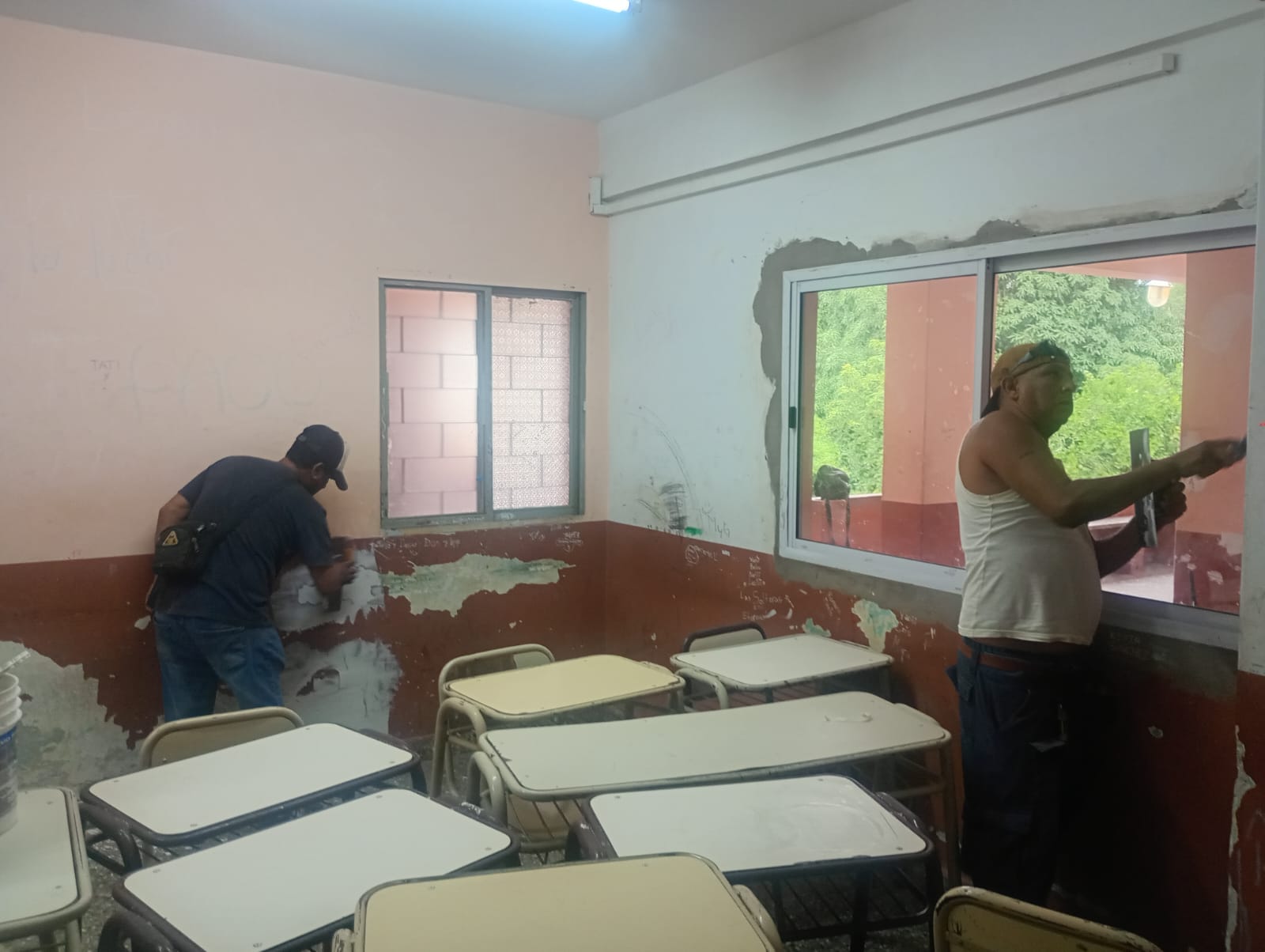 A cargo del equipo de Obras Públicas se procedió “a realizar trabajos de curado y preparación de paredes en aulas de la institución”, según contó Cristian Isasmendi agregando “tenemos un plan de obra hasta el 9 de febrero”.