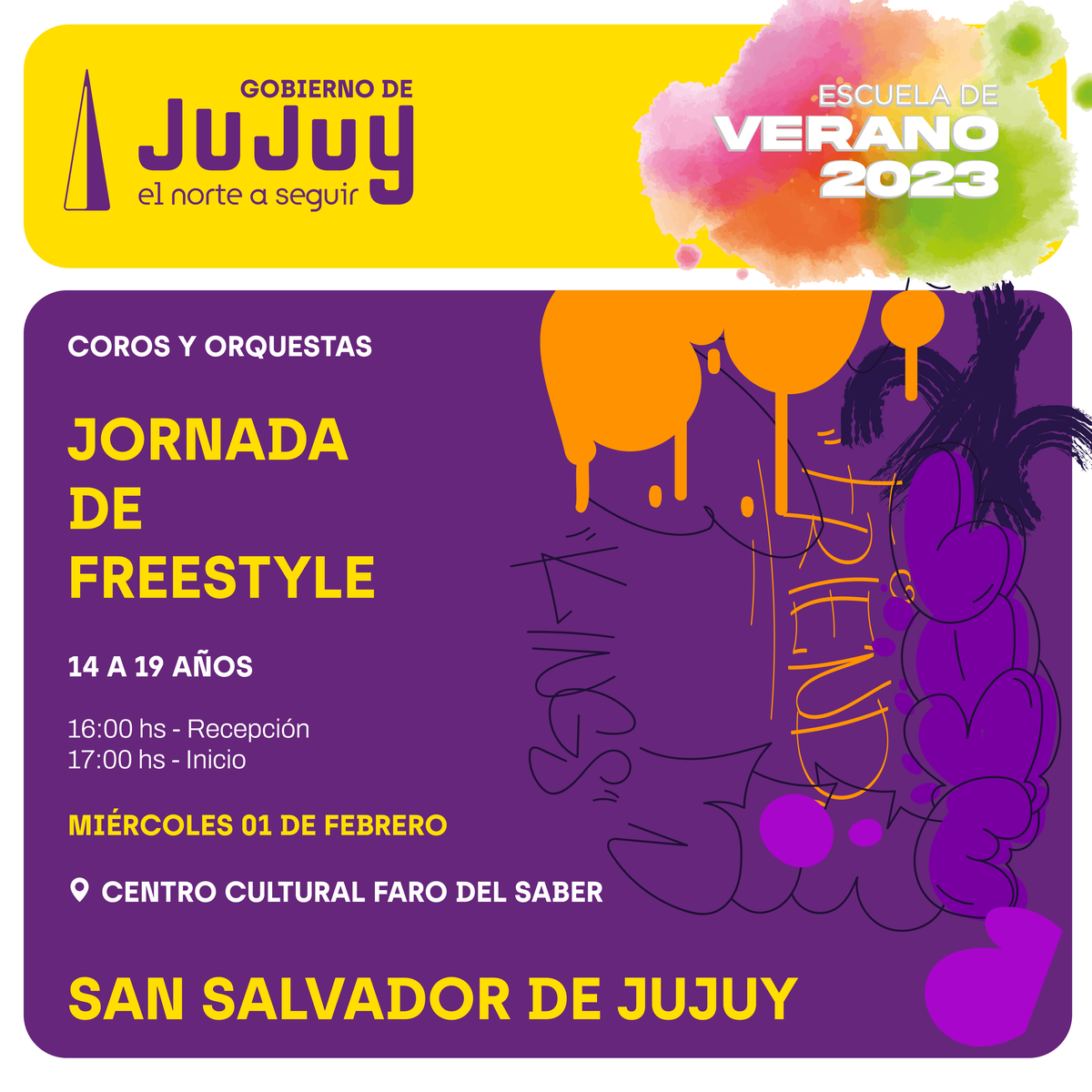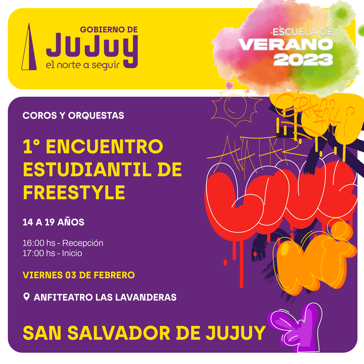En el marco de las actividades de la Escuela de Verano 2023, el Ministerio de Educación a través de la Subsecretaría de Equidad Educativa, invita a jóvenes de entre 14 y 19 años a sumar su voz en el Primer Encuentro Estudiantil de Freestyle «The battle of dreams», que se llevará a cabo el viernes 3 de febrero en el Anfiteatro Las Lavanderas.