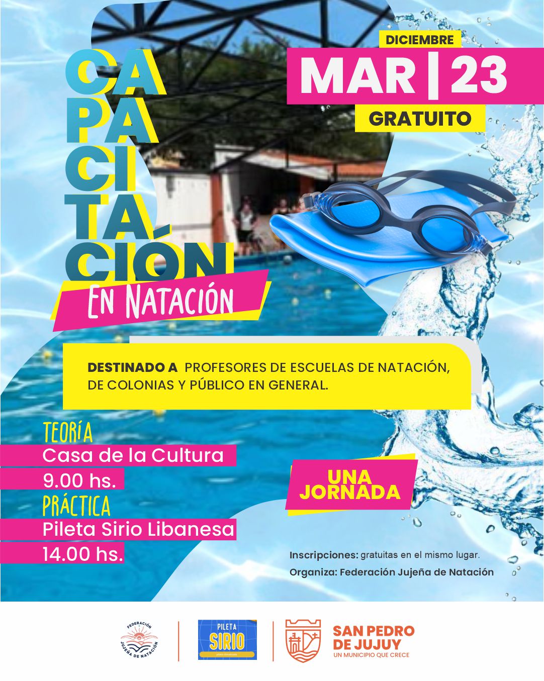 Las clases van a comenzar el 5 de enero venidero en el natatorio municipal ubicado en calle Gobernador Tello 345 de la ciudad de San Pedro de Jujuy, el costo es de 10 mil pesos abonando en diciembre en oficinas de Rentas ubicadas en la planta baja del Palacio Municipal.