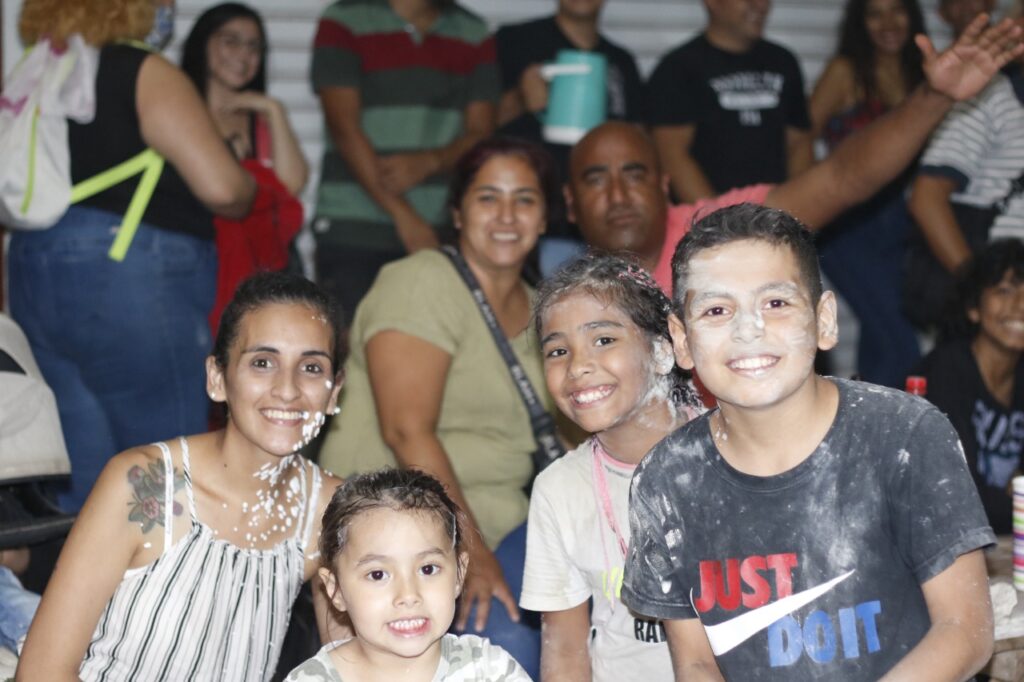 El publico se divirtió con espuma y talco toda la noche, pero al llegar el turno de los tinku y pin pin se levantaban a bailar y aplaudir desde su lugar.
