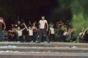 Así, al frente de cada estudiante, hubo un papá, una mamá, hermanos, tíos, abuelos, que aplaudieron, saltaron, cantaron al compás de la presentación de todas las escuelas que presentaron la campera, buzo y chomba.