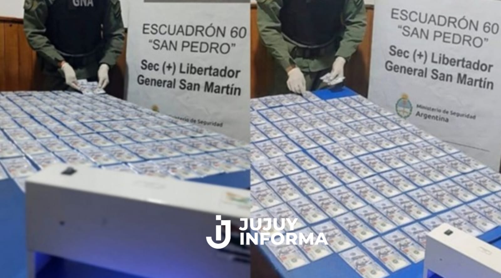 Los funcionarios hallaron adheridos a sus cuerpos fajos con billetes ocultos bajo sus prendas. Peritos de Criminalística y Estudios Forenses, confirmaron que se trataba del traslado de 11.600 dólares en billetes falsos.