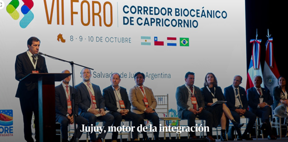 Durante la primera semana de octubre, la provincia de Jujuy se consolidó como el motor regional al ser sede del VII Foro de los Territorios Subnacionales del Corredor Bioceánico de Capricornio (CBC).
