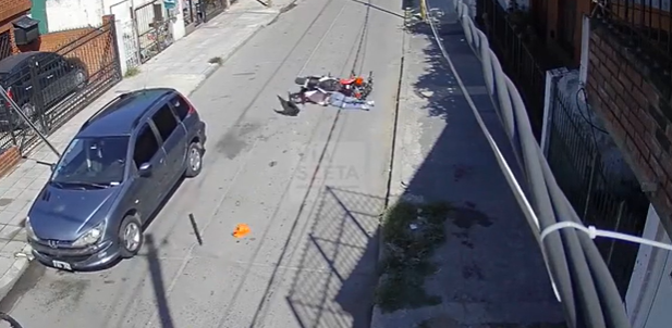 Según muestran las imágenes de una cámara de seguridad apostada en la zona, el joven luego identificado como Marcelino Rodríguez, de 23 años, circulaba a bordo de la motocicleta KTM Duke 390 y pierde el control del rodado. Es en ese momento que colisiona de lleno contra un Peugeot 206 color gris que se encontraba estacionado.