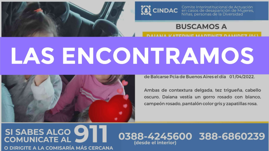 Cabe aclarar que las niñas eran intensamente buscadas por la Policía de Buenos Aires y el CINDAC de la Provincia de Jujuy.