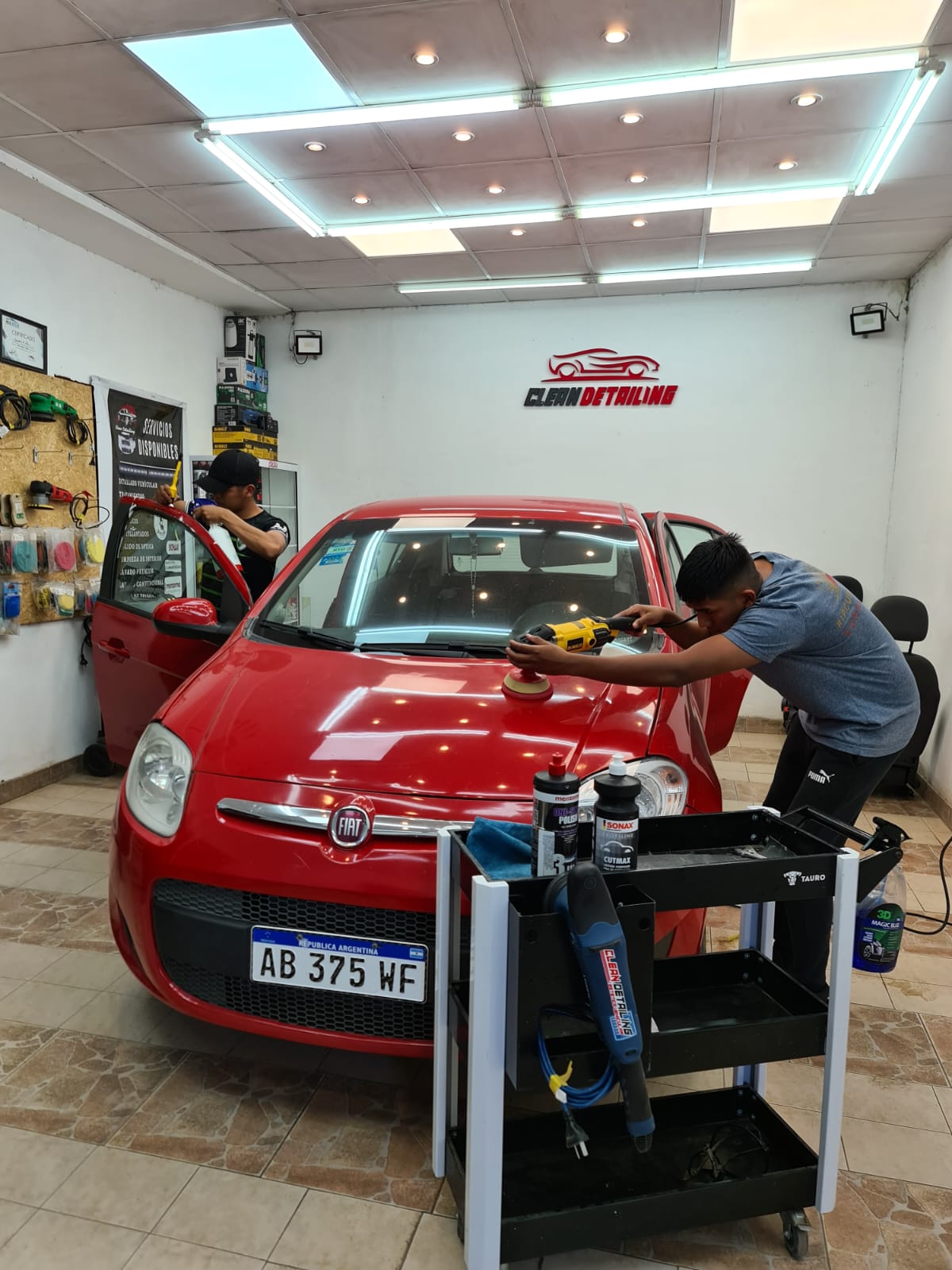 Para Santiago esto empezó como un jobi, pero ni bien tuvo la oportunidad invirtió en máquinas y productos para abrir su taller. Se largo a hacer lavados, trabajando con autos de familiares, amigos y vecinos. Así, poco a poco la agenda de clientes se fue ampliando por recomendación de los mismos y como resultado del excelente servicio que desempeñaba.