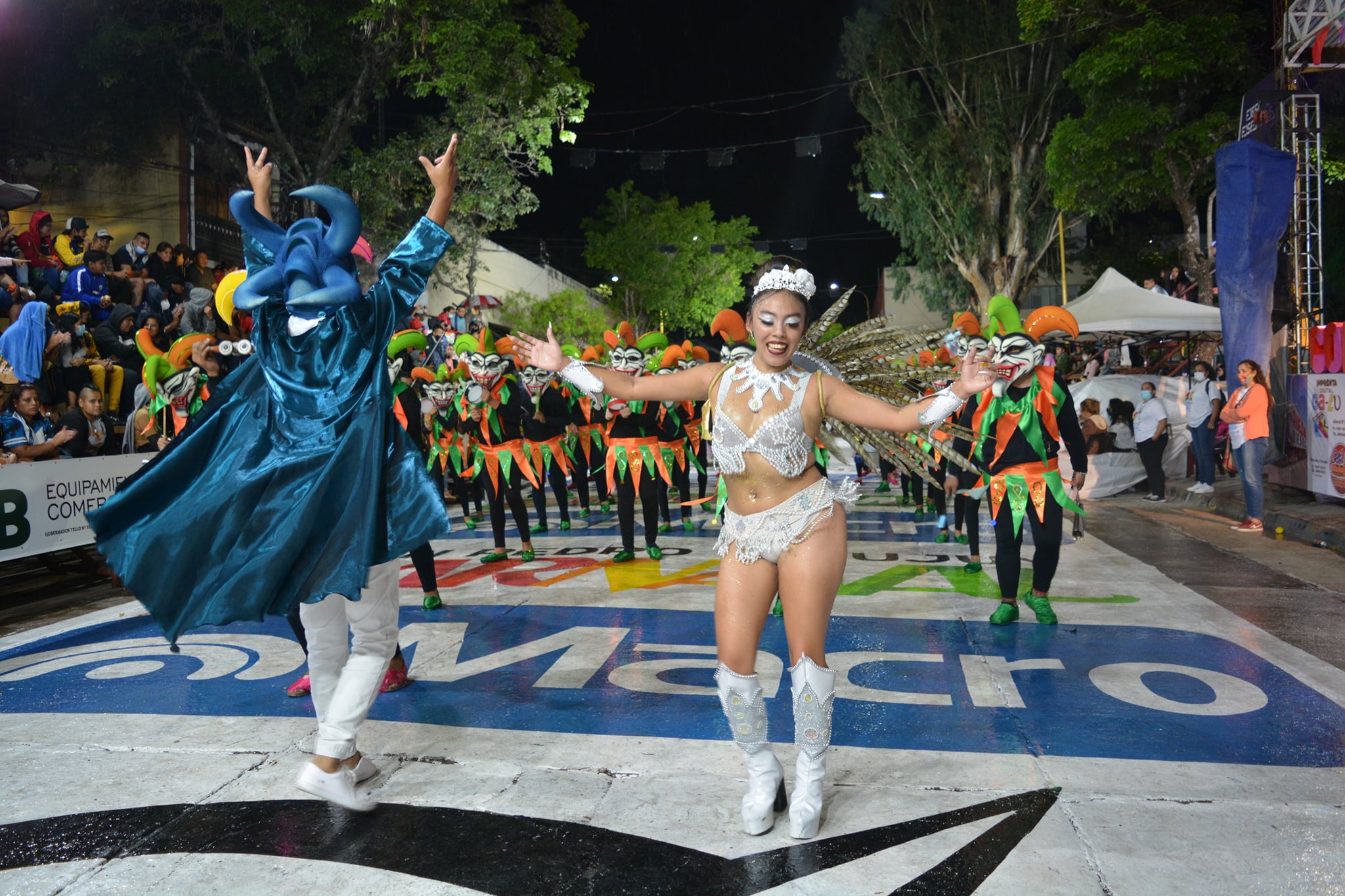 Con el pasaje de la comparsa artística Yaounde se cerró la primera noche habida cuenta que estaban pendiente por la lluvia marcando el ritmo de todos los integrantes.