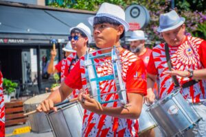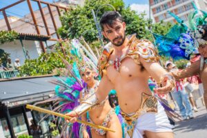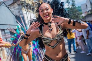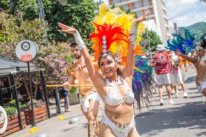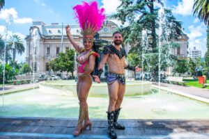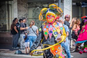 Los artistas del carnaval surcaron las calles de la Capital jujeña luego de la presentación oficial de los corsos 2026 en las instalaciones del Caja, Centro Arte Joven Andino.