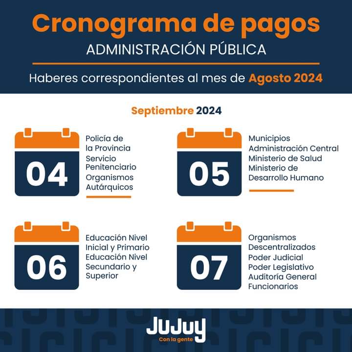 El ministro de Hacienda y Finanzas, Federico Cardozo, anunció que el cronograma de pagos de haberes correspondientes al mes de agosto a los agentes que prestan servicios en las diferentes áreas de la Administración Pública Provincial, comenzará a efectivizarse el miércoles 4 de septiembre y se completará al sábado 7.
