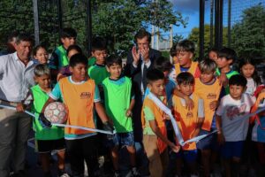 El Intendente carmense contó que “pudimos hacer el cerramiento perimetral, pintura de la cancha, era un espacio que estaba abandonado, logramos recuperarlo, tenemos iluminación para que los chicos del barrio puedan hacer uso de este lugar a toda hora en cualquier momento de la jornada”, subrayó.