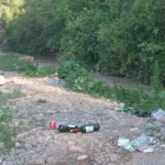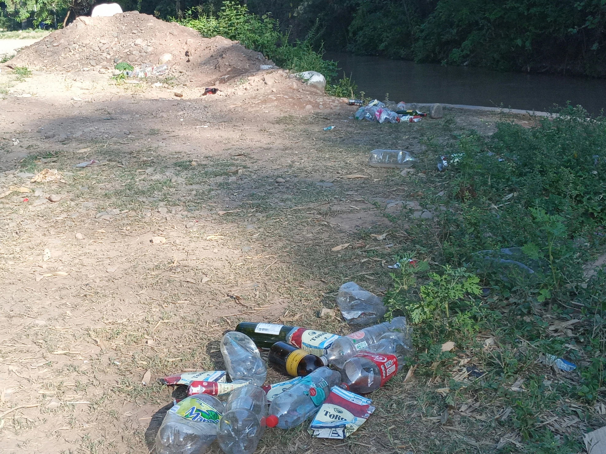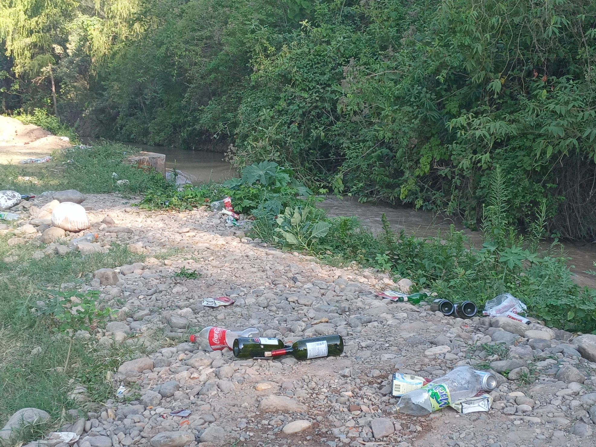 Personas que llegaron para refrescarse en el arroyo que atraviesa la ruta provincial, este fin de semana inauguraron el año dejando botellas de bebidas alcohólicas y otros envases descartables que contaminan el medio ambiente y dan una mala imagen a los turistas que visitan el Santuario y que también llegan a recorrer el área protegida del Parque Nacional Calilegua.