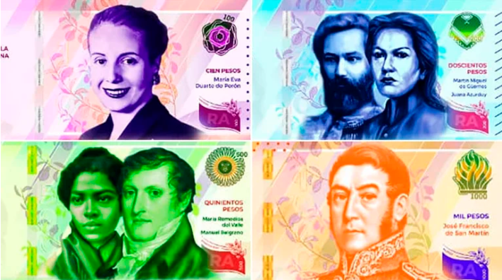 “La nueva familia se compone de cuatro denominaciones que incluyen la representación de tres mujeres y tres varones que jugaron un papel decisivo en la construcción de nuestro país, figuras trascendentes que rompieron el molde de su época y lucharon por la independencia, el desarrollo, la inclusión y la ampliación de derechos”, detalló el BCRA.