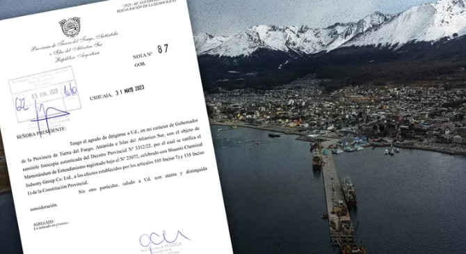 Mediante una carta enviada a la presidenta de la Legislatura de Tierra del Fuego, Mónica Urquiza, los legisladores le exigen que remita al Congreso de la Nación “a la mayor brevedad posible una copia certificada” del memorándum de entendimiento firmado entre la provincia y la empresa china.