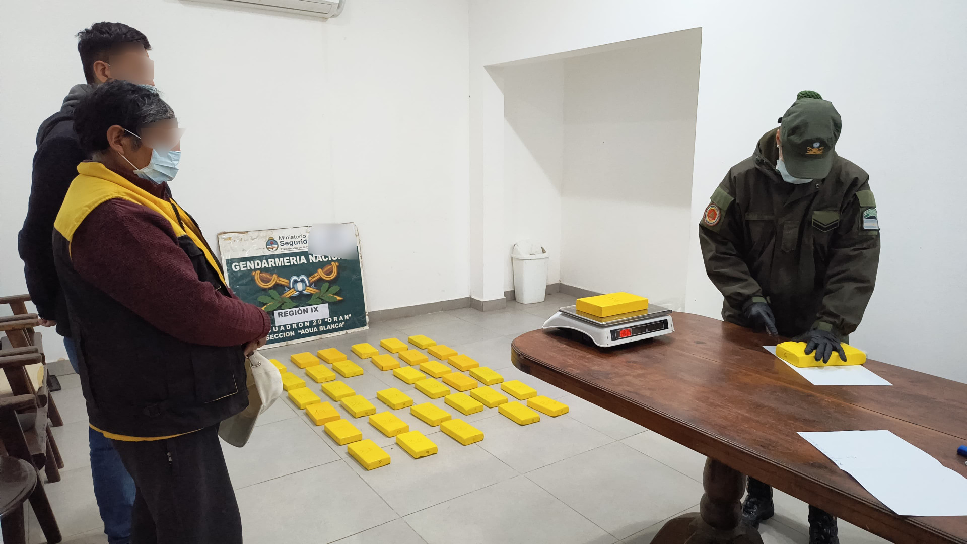 Los ladrillos fueron sometidos a la prueba de campo Narcotest que arrojó como resultado positivo para cocaína con un peso total de 37 kilos 674 gramos.