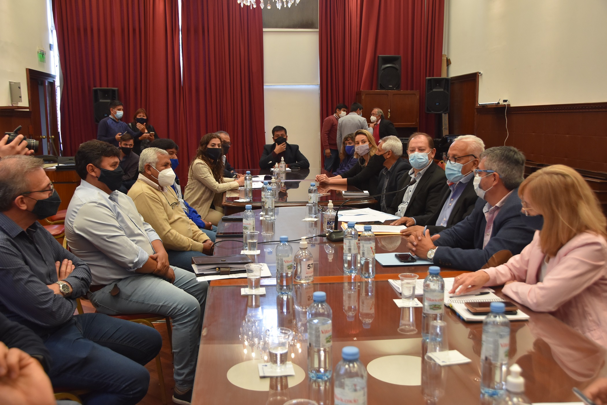 La Comisión de Trabajo y Seguridad Social de la Legislatura se reunió con representantes del Ministerio de Trabajo de la Provincia y de la Nación, y referentes del sector agropecuario para trabajar acerca del proyecto de Ley que permitiría que los trabajadores rurales que poseen programas nacionales, provinciales o municipales puedan ser registrados sin que pierdan dicho beneficio. El proyecto, que es una adhesión al decreto nacional Nº 514/2021 Ministerio de Trabajo, Empleo y Seguridad Social tiene moción de preferencia con Despacho de Comisión y será tratado en la próxima Sesión Ordinaria.