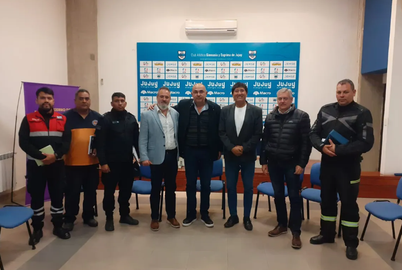 En instalaciones del Club Gimnasia y Esgrima de Jujuy, se desarrolló una reunión con la presencia de Hugo Flores, secretario de Deportes y Recreación; Sebastián Ferchero, responsable operativo de Copa Argentina sede Jujuy; Walter Morales presidente de la institución deportiva; Alejandro Marenco secretario de Seguridad; Fernando Frías director de Tránsito y Transporte de la Municipalidad capitalina, y representantes de SAME, Policía de la Provincia, Seguridad Vial y Defensa Civil.