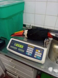 Un tucán adulto (Ramphastos toco), ingresó al Centro de Atención de la Fauna Autóctona de Jujuy (CAFAJu), que depende del Ministerio de Ambiente, producto de una herida en el ala izquierda y un orificio en la zona pectoral debido a un disparo de aire comprimido.